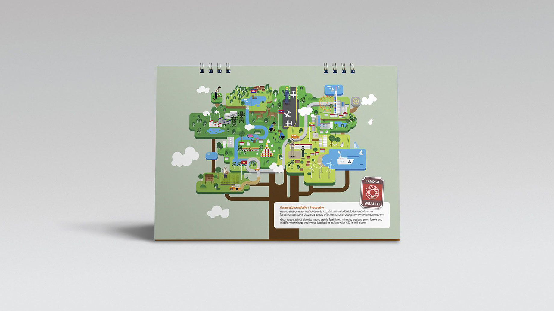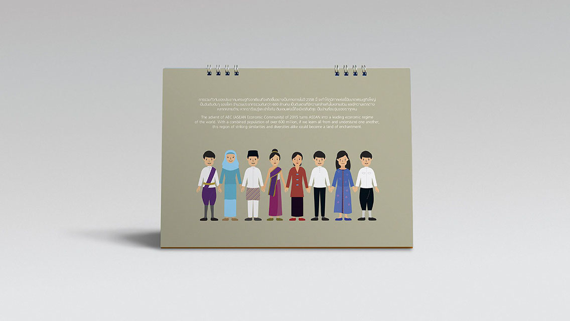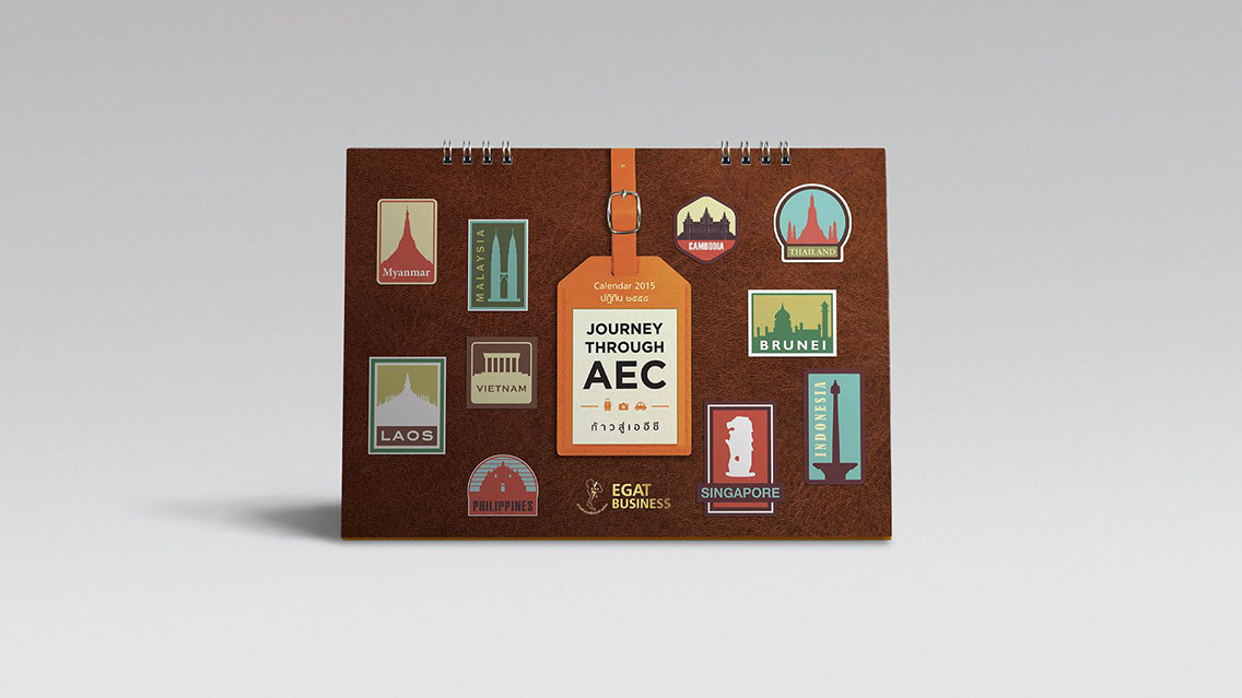 Electricity Generating Authority of Thailand (EGAT) is Thailand’s leading state-owned power utility under the Ministry of Energy, responsible for electric power generation, acquisition and transmission for the whole country as well as bulk electric energy sales. To welcome the establishment of the ASEAN Economic Community (AEC) in 2015, EGAT asked us to design a calendar entitled “Journey through AEC” as their corporate gift.