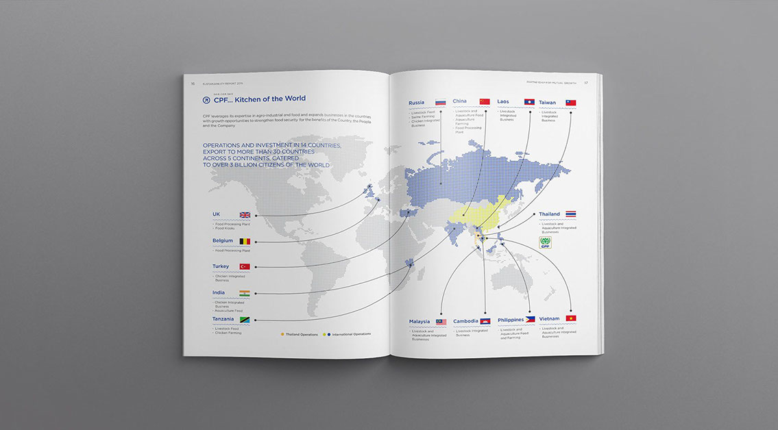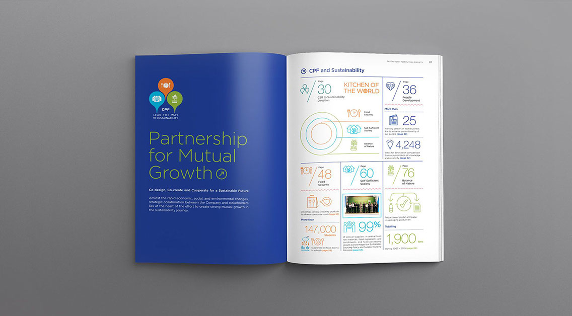 As one of the world’s leaders in agro-industrial and food conglomerate, Charoen Pokphand Foods Public Company Limited (CPF) recognizes their roles and responsibilities to sustainability for the country, the people, and the company. Each year, in cooperation with the Annual Report, CPF generates another report, a Sustainability Report to project their strategic directions toward sustainability.