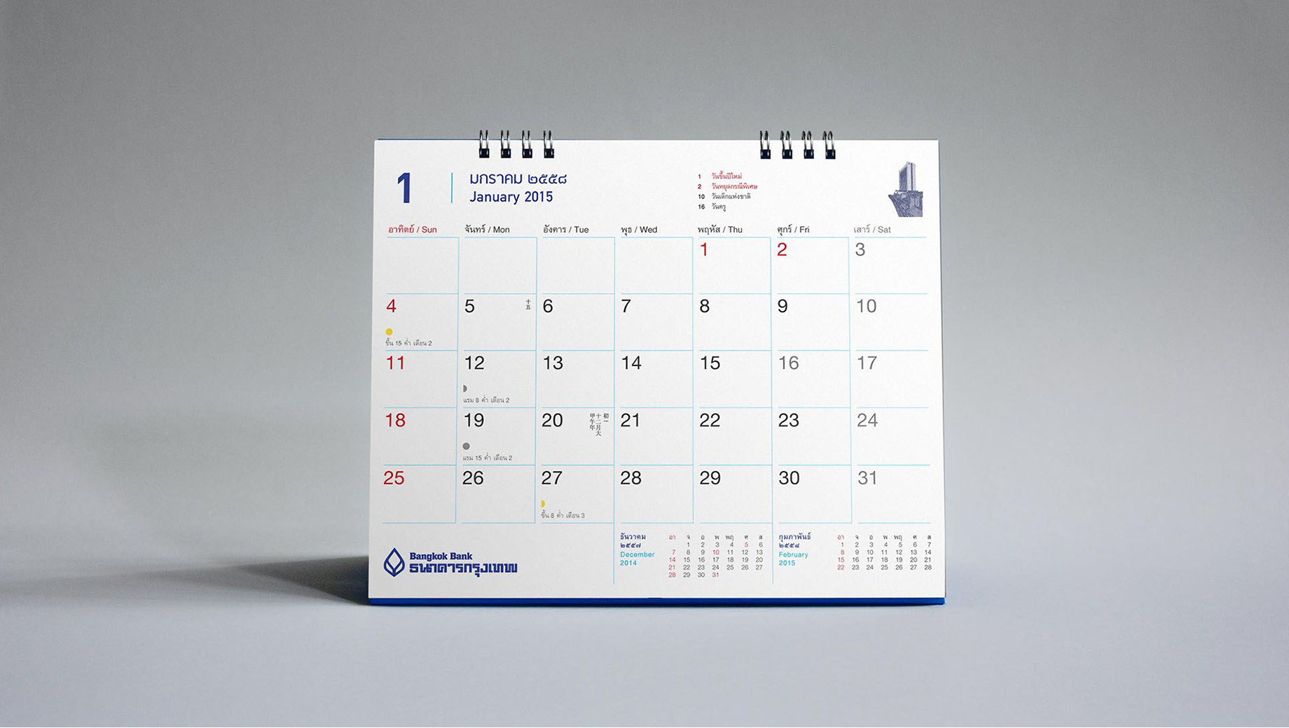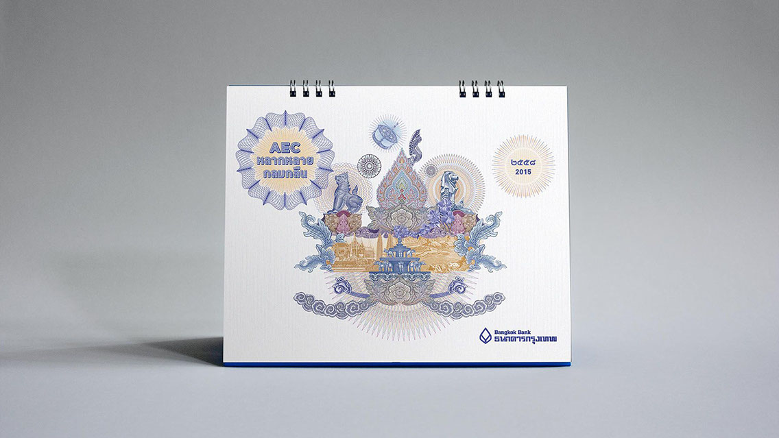 Bangkok Bank is one of the largest regional banks in Southeast Asia, spanning business in 15 economies worldwide. Established in 1944, Bangkok Bank is Thailand's market leader with the country's largest retail customer base offering full commercial banking services. Every year, Bangkok Bank publishes a calendar to send to their customers. We were asked to design a calendar for the year 2015 under the title AEC: Diversity and Harmony. The formation of the ASEAN Economic Community (AEC) is a major milestone in the regional economic integration agenda in ASEAN.