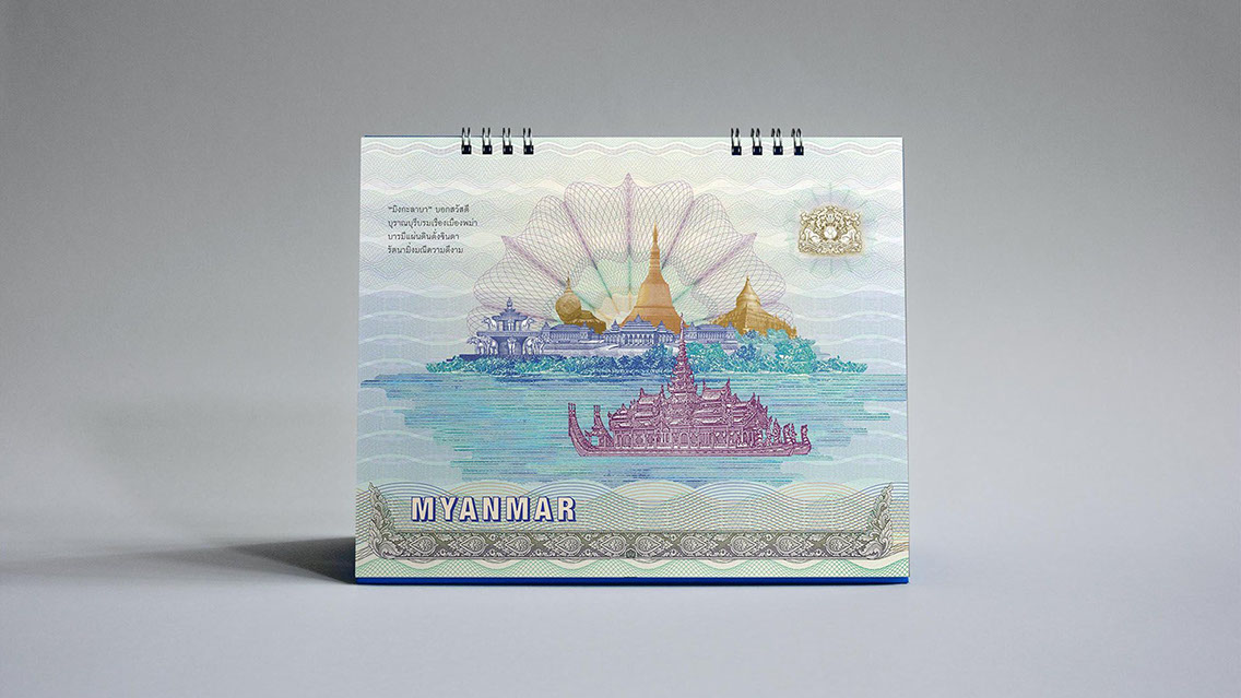 We employed the banknote style engraving to illustrate a series of landmarks of the ten AEC member countries to reflect the banking business and celebrate new opportunities of shared prosperity in the global economy. The graphical elements, patterns, and colour palette have been sourced from the original banknotes and carefully crafted into a new visual language, harmoniously integrated to express artistic values of each country. The cover unites the diversity of each national identity into a grand single visual resembled the power of the ASEAN community.