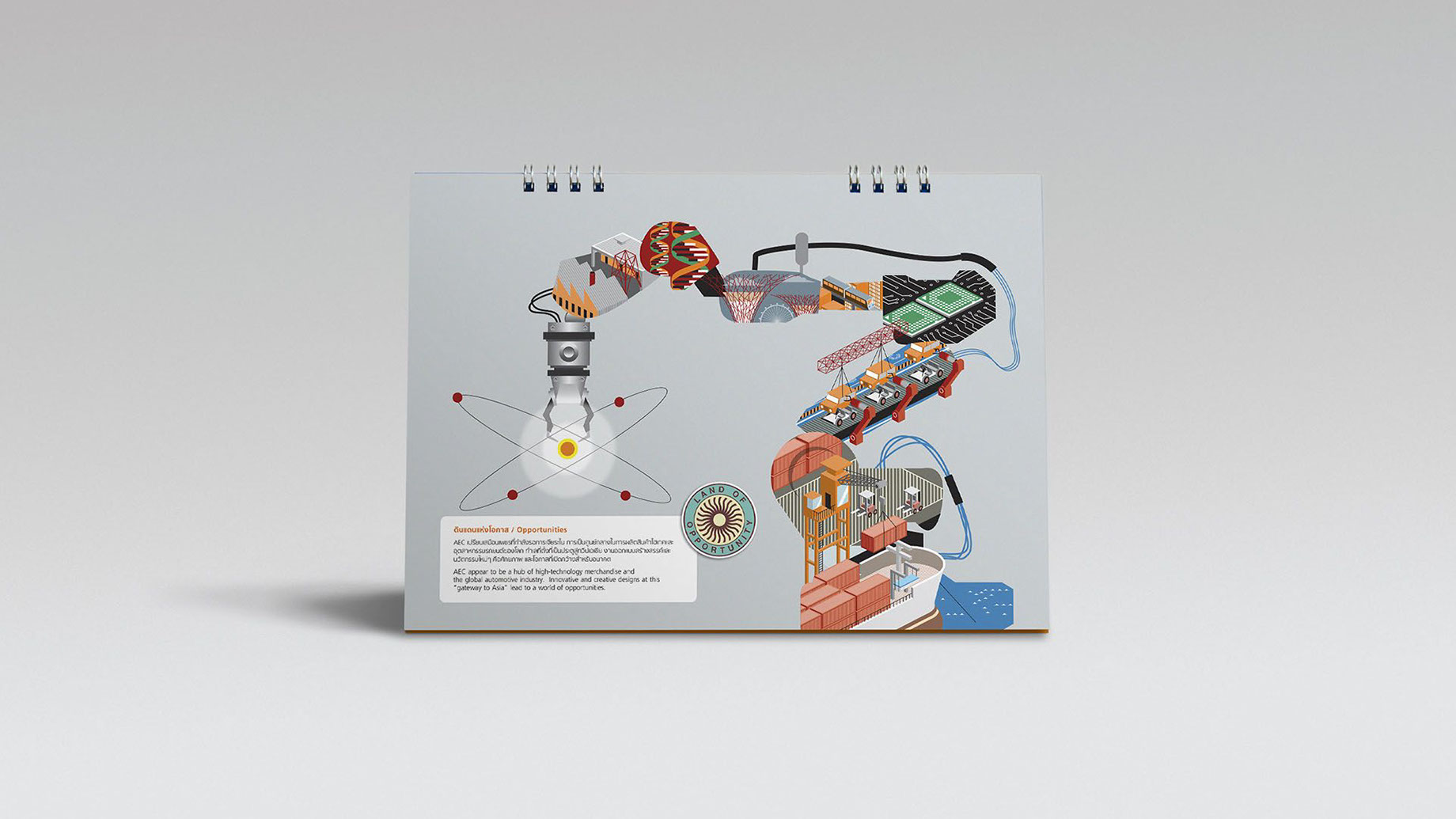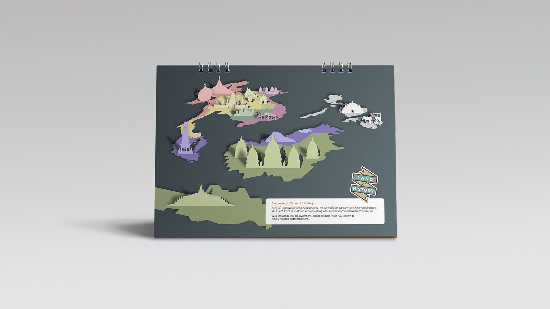 Electricity Generating Authority of Thailand (EGAT) is Thailand’s leading state-owned power utility under the Ministry of Energy, responsible for electric power generation, acquisition and transmission for the whole country as well as bulk electric energy sales. To welcome the establishment of the ASEAN Economic Community (AEC) in 2015, EGAT asked us to design a calendar entitled “Journey through AEC” as their corporate gift.