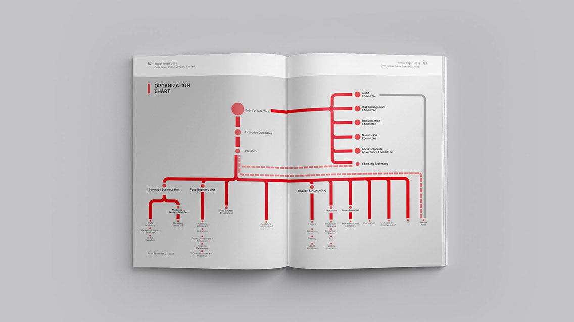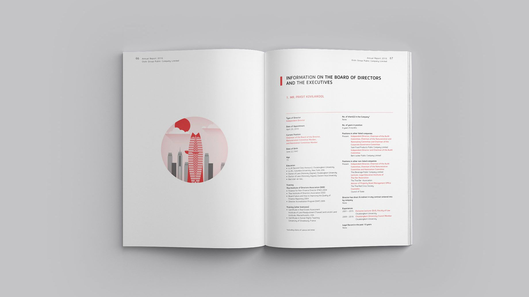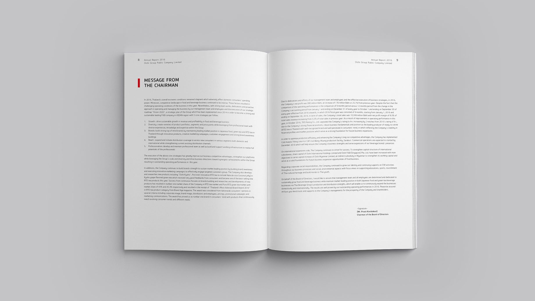 Oishi Group is one of the top food and beverage companies in Thailand, continuing to thrive as the leader and innovator of the Japanese food and beverage business to leverage the quality of life and wellness of the new generation. To thrive in the new digital world, the F&B business needs not only cooking prowess but also a breakthrough for innovation and creativity for better-personalized products and services. We designed a 2016 Annual Report to help Oishi Group reflect their next pioneering step.
