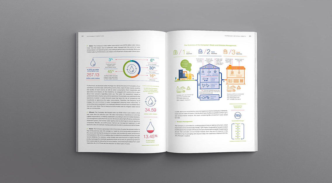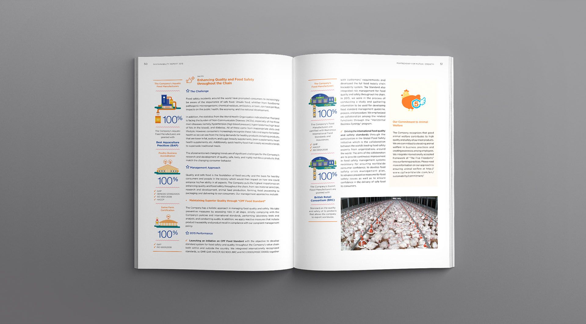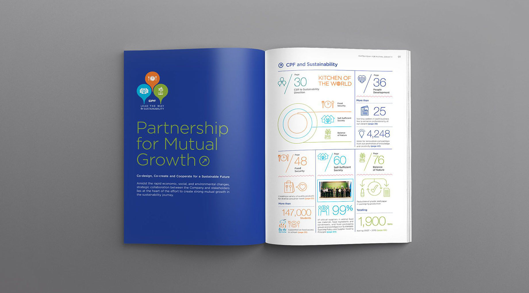 As one of the world’s leaders in agro-industrial and food conglomerate, Charoen Pokphand Foods Public Company Limited (CPF) recognizes their roles and responsibilities to sustainability for the country, the people, and the company. Each year, in cooperation with the Annual Report, CPF generates another report, a Sustainability Report to project their strategic directions toward sustainability.