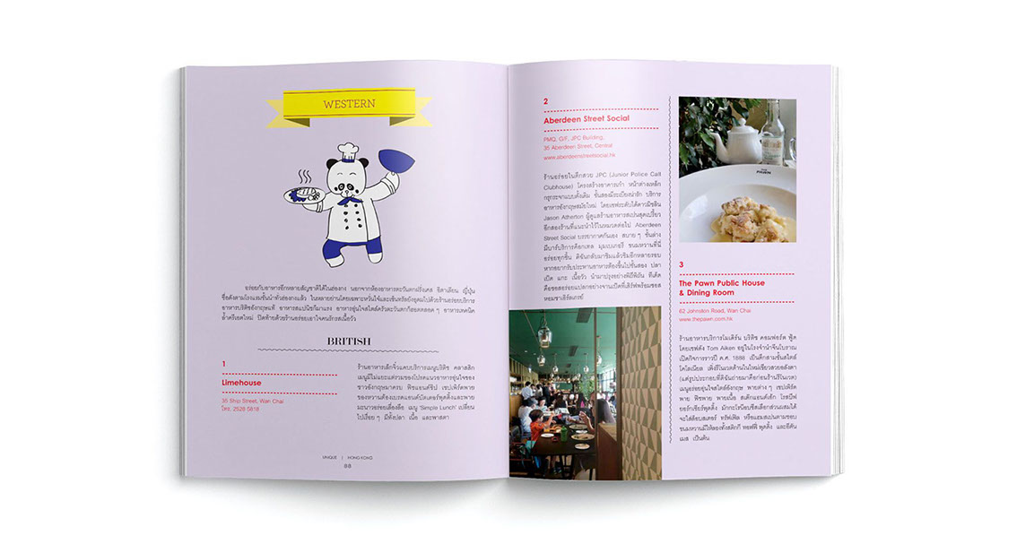 Ploy Chariyaves is one of the most influential lifestyle gurus of Thailand. She is also an artist, translator, and writer with more than 20 books published about travel, fashion, coee, breakfast, and lifestyle. For her 22nd book titled ‘Unique Hong Kong’, we were responsible for the art direction and design of the whole book.